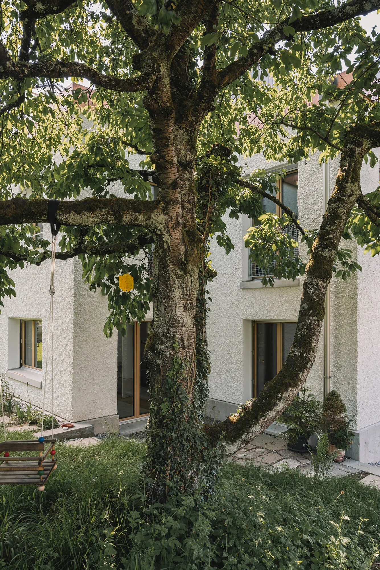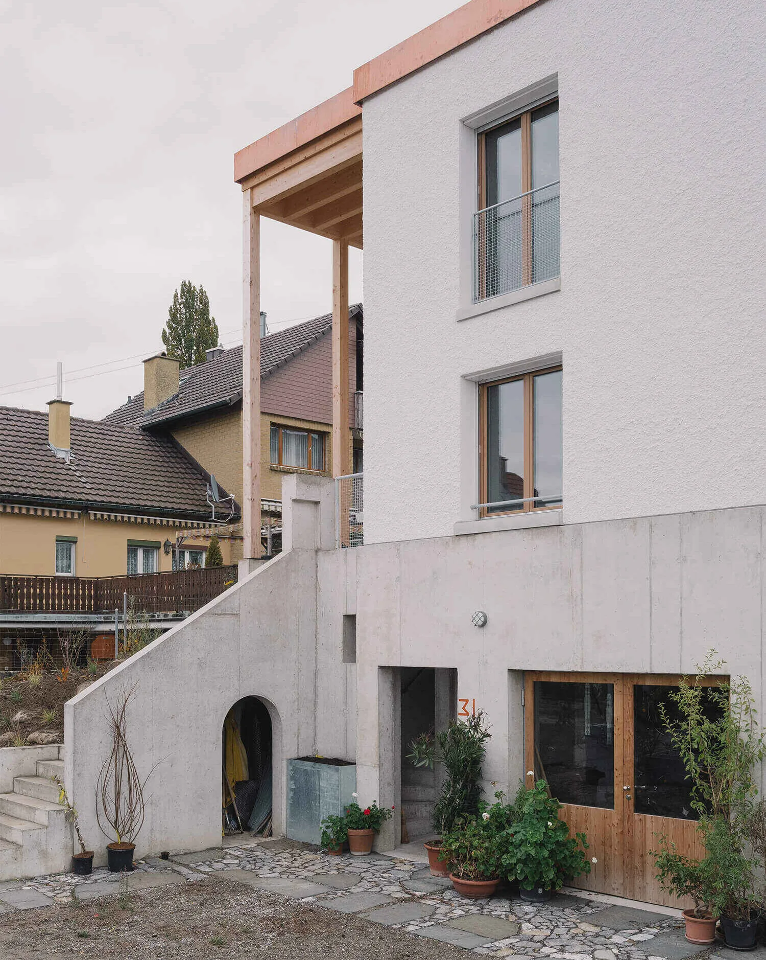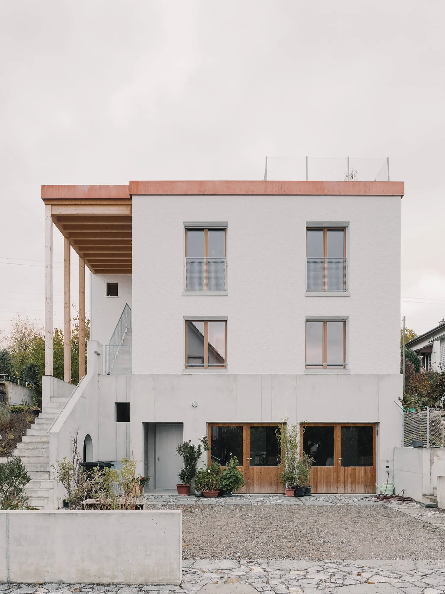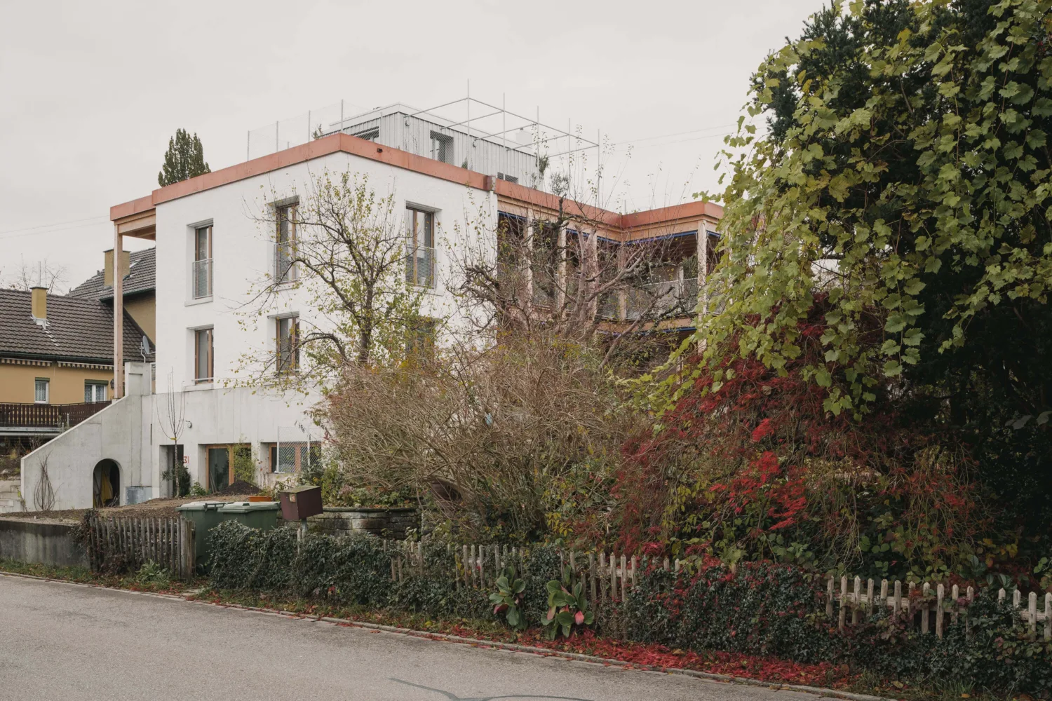 In the agglomeration of Zurich, a young family purchased a plot of land adjacent to their parental home in order to build two residential units for themselves and relatives.