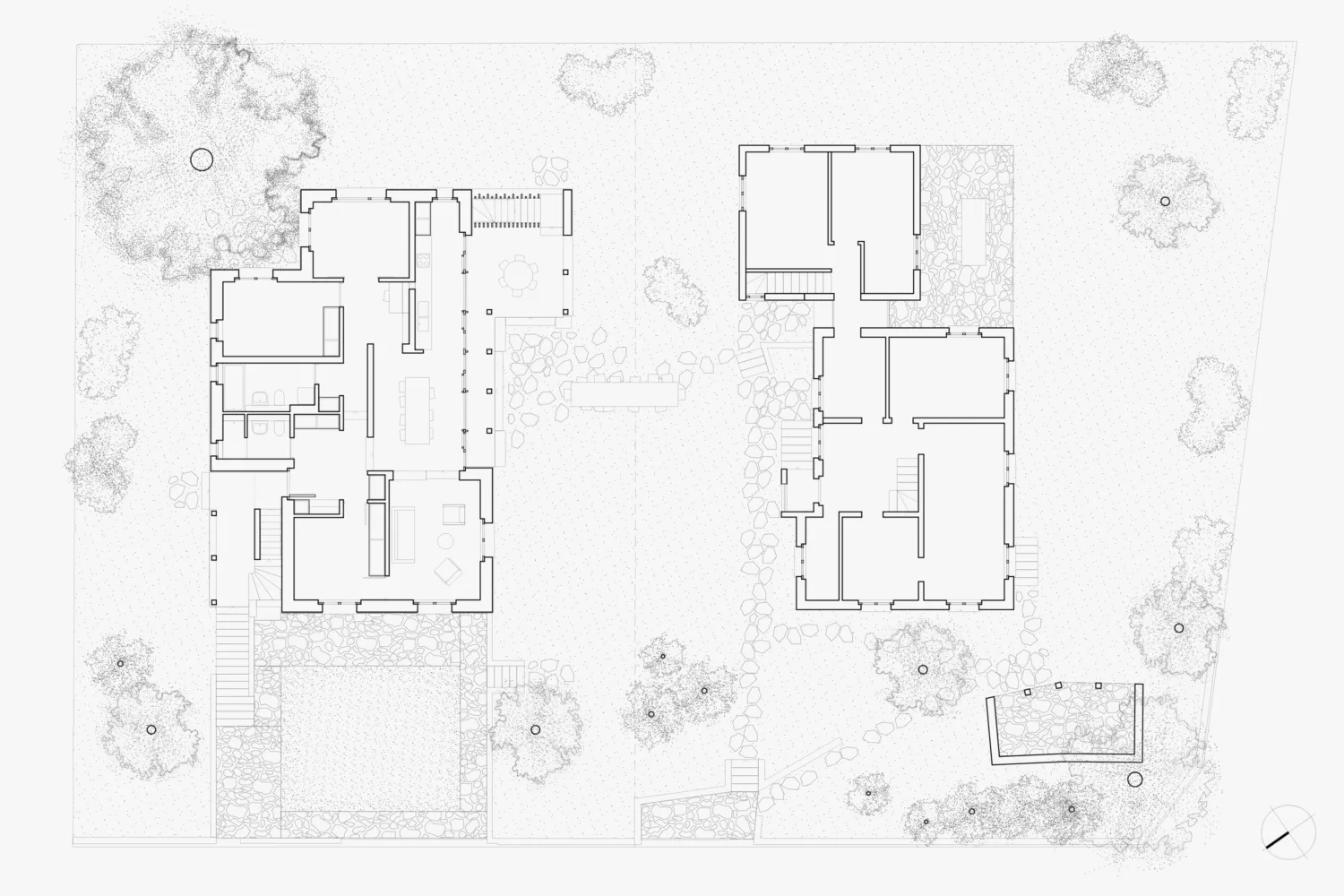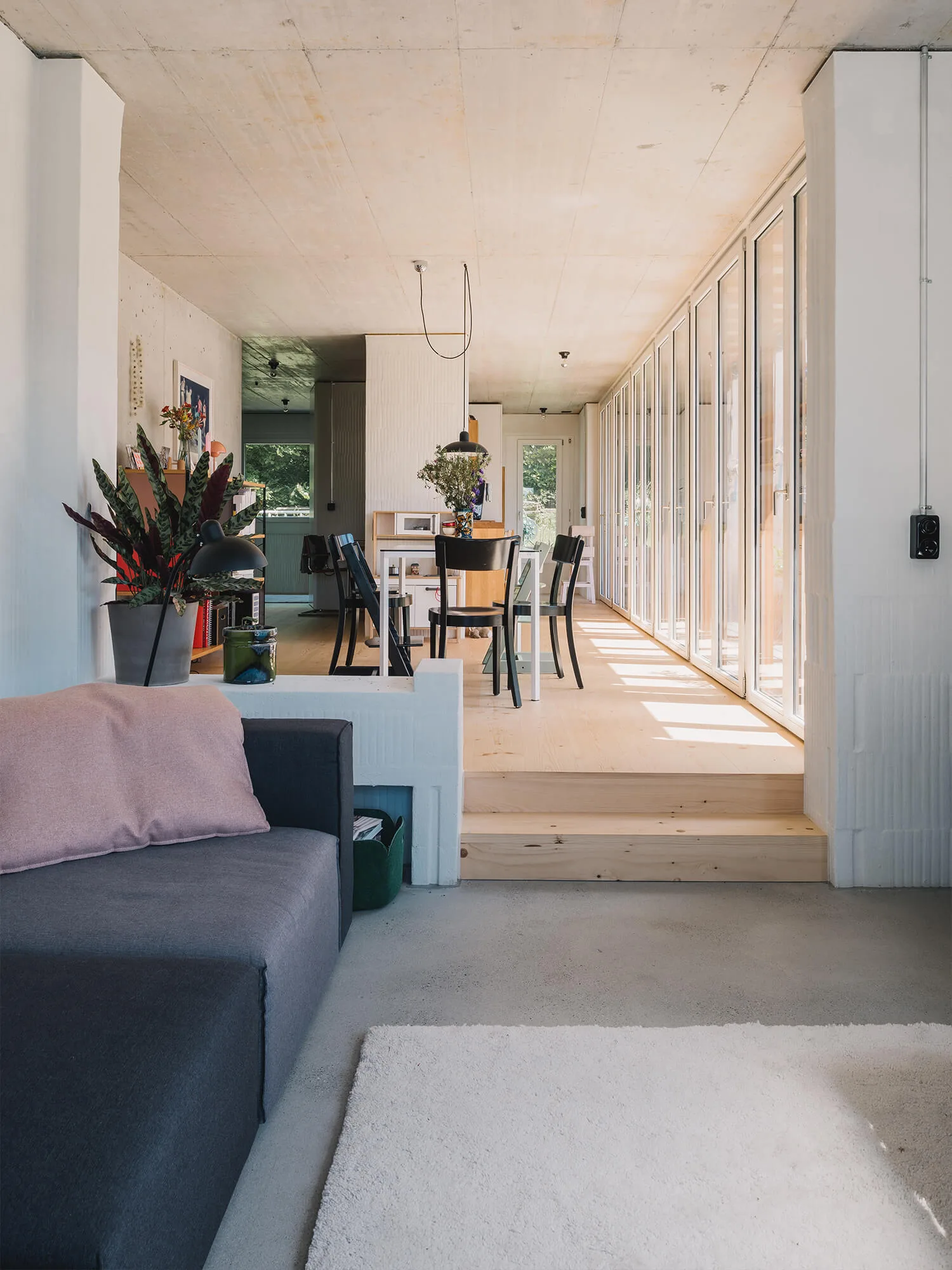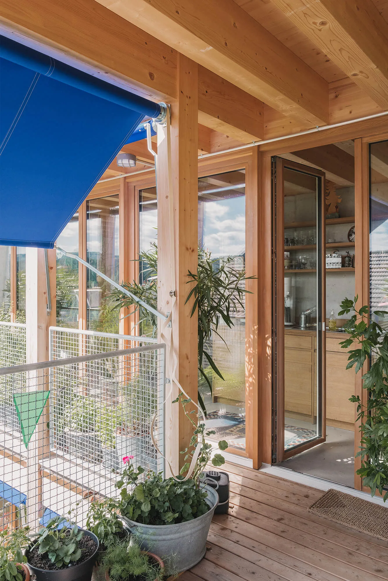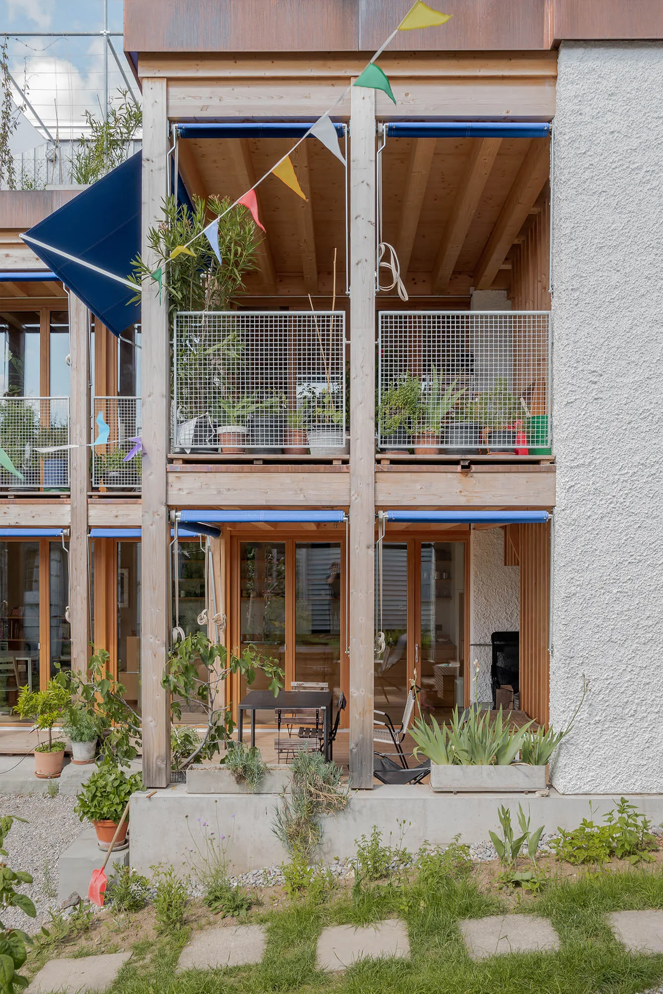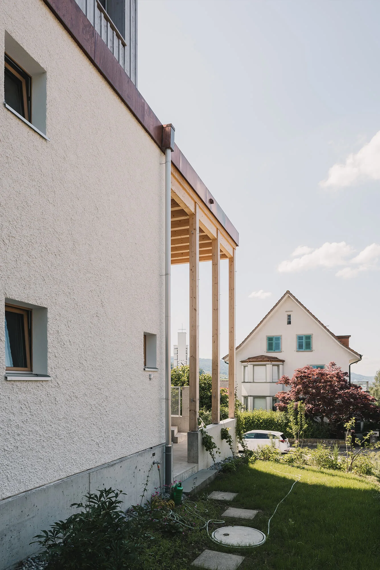 In the agglomeration of Zurich, a young family purchased a plot of land adjacent to their parental home in order to build two residential units for themselves and relatives.
